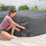 A masszív és vízálló szerkezet megvédi a pezsgőfürdőt az esőtől, szennyeződésektől és az UV-sugárzástól, és meghosszabbítja az élettartamát.