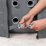 Az állítható, csatos pánt tökéletes illeszkedést biztosít, a cipzár pedig lehetővé teszi a beépített és a külső szivattyú csatlakoztatását a fedél levétele nélkül.
