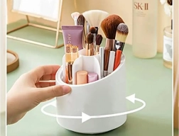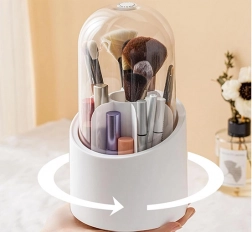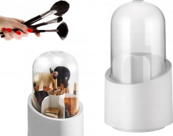 Tartsa a fésülködőasztalát tökéletesen rendezett állapotban. Ez a kompakt rendező 360°-ban forgatható talppal, átlátszó, porálló fedéllel és 7 rekesszel rendelkezik ecsetekhez, rúzsokhoz és apróságokhoz. Tartós műanyag és minimalista dizájn, amely szépen illeszkedik bármely fürdőszobába vagy hálószobába.