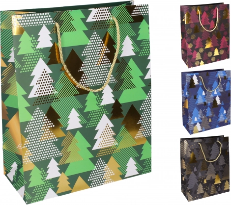 Ez a nagy ajándéktáska 40x30x12 cm méretben ideális nagyobb ajándékok csomagolására. Válasszon 4 különböző karácsonyi motívum közül, amelyek feldobják az eseményt.