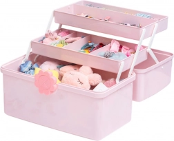 Praktikus rózsaszín rendező fedéllel, amely tökéletesen rendszerezi kiegészítőidet. Kompakt méreteinek és nagy kapacitásának köszönhetően ideális hajgumik, csatok, fejpántok, bizsuk és apróságok számára. Tartós műanyag kivitel, könnyen tisztítható, és remekül mutat a fésülködőasztalon, a fürdőszobában vagy az irodában.