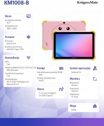 A Krüger&Matz Fun táblagép különösen gyermekek számára készült, nemcsak szórakozást, hanem tanulási lehetőséget is biztosít. Az 10,1" IPS kijelzőn élénk színekkel a gyerekek élvezhetik a filmeket, játékokat és rajzolást. A biztonsági elemek a dizájnban biztosítják, hogy a táblagép ellenálljon az ütéseknek és cseppeknek, ami ideális a mindennapi használatra.