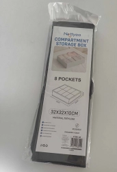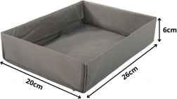 Praktikus és esztétikus rendszerező 26x20x6 cm méretben, ideális a rend fenntartásához a fiókokban, polcokon vagy szekrényekben. Az univerzális kialakítás lehetővé teszi alsónemű, zokni, kiegészítők vagy kozmetikumok tárolását.
