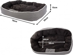 A kb. 50 × 40 cm-es fekvőfelület kiváló a kisebb és közepes méretű kutyáknak és macskáknak. A 15 cm-es magasság növeli a kényelmet és véd a padló hidegétől.