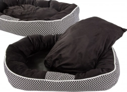 Tegye kedvence pihenését mindennapi örömmé. A fekhely kellemes plüssből készült, amely melegít és szigetel a hideg padlótól. A megemelt peremeknek köszönhetően támaszt nyújt a fejnek és a hátnak, valamint biztonságérzetet ad. A stílusos fekete belsőt elegáns fekete-fehér cikcakk szegély egészíti ki, amely remekül illik a modern enteriőrbe.