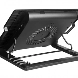 Icestorm 17" hűtőpad ideális választás minden laptopfelhasználó számára. A pad egy nagy, csendes, 125 mm átmérőjű ventilátorral van felszerelve, amely kék háttérvilágítással rendelkezik. A könnyű használat érdekében a ventilátor külön gombbal kapcsolható be és ki. A pad 12"–17" méretű laptopokkal kompatibilis.