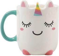 A bögrének kidolgozott egyszarvú megjelenése van fülekkel, szivárványszínű szarvval és festett részletekkel, amelyek életre keltik bármelyik teret.