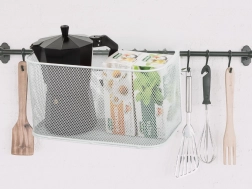 Praktikus függő kosár tartós fémhálóból, amely segít rendet tartani a konyhában, fürdőszobában, irodában és hálószobában. Az okos rögzítőknek köszönhetően könnyedén felakasztható sínre, polcra vagy ajtóra fúrás nélkül. A könnyű, erős és szellős kosár kiváló áttekinthetőséget biztosít a tárolt dolgoknak, gyors telepítést és sokoldalú felhasználást bármely enteriőrben.