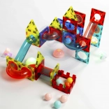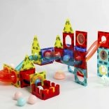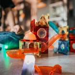 Ez a mágneses építőkészlet gazdag elemkészletet kínál egyedi építmények és dinamikus golyópályák létrehozásához. A világító golyóknak és reflektoroknak köszönhetően látványos, „ragyogó” pálya jön létre, amely leköti a gyerekeket és meghosszabbítja a játékidőt. Az erős mágnesek biztosítják a szilárd kapcsolódást, így az összetettebb 3D szerkezetek is stabilan állnak.