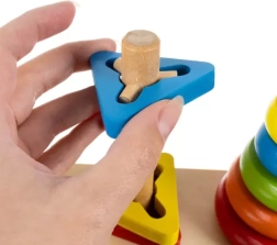 A fa összerakóval való játék elősegíti a finom motorika és a kéz-szem koordináció fejlődését, amely révén a gyerekek megtanulják a pontosságot és ügyességet.