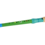 Ez a festett fa fuvola 33 cm hosszú, és ideális a kezdő zenészek számára. Könnyű és tartós fából készült, ami kényelmes játékot és a hangszer hosszú élettartamát biztosítja. Vidám dizájnja és színes mintái minden gyermeket lenyűgöznek, és gyakorlás közben is örömet okoznak.