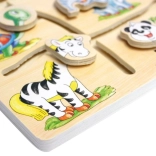 Fedezze fel a legkisebbeknek szánt szórakoztató és fejlesztő játékot – a Bino márka fa motorikus állatos labirintusát. A gyerekek a megfelelő fejeket párosítják az állatok testével, miközben fejlesztik a finommotorikát, a logikus gondolkodást és az állatok felismerését. A rétegelt lemezből készült, masszív kivitel hosszú élettartamot és biztonságos játékot biztosít.