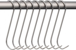 Kaminer 15 darabos rozsdamentes acél horgok készlete biztonságos és hatékony hús- és halfüstöléshez. Az 'S' alakú horgok biztosítják a stabil felfüggesztést, korrózióálló és magas hőmérsékletnek ellenálló, ideális bármilyen körülményekhez.