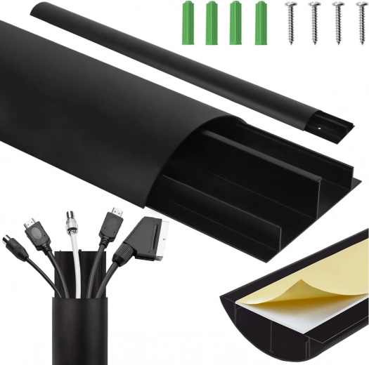 Elegáns fekete alumínium álcázó lista a kábelek rendezésére otthonokban, irodákban vagy kereskedelmi helyiségekben. Esztétikus és praktikus, magas ellenállósággal.