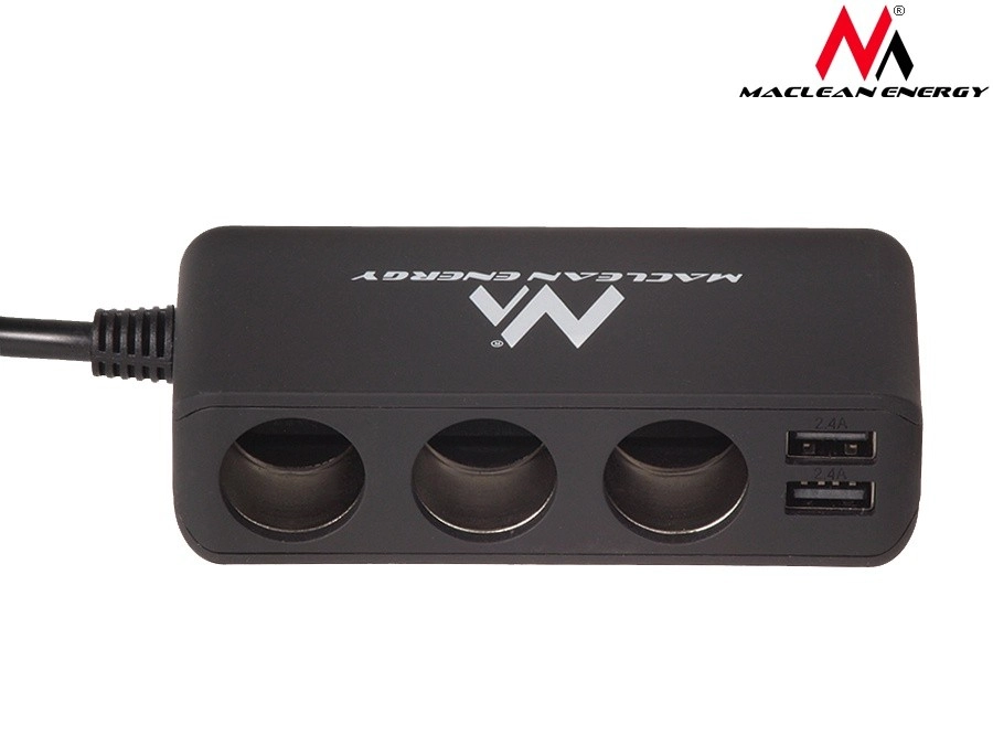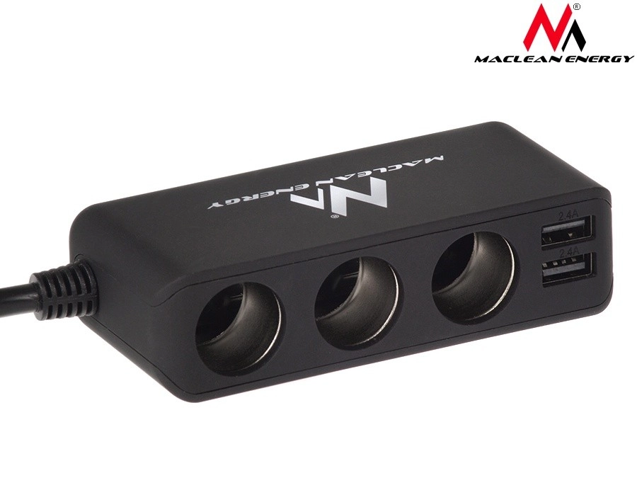 A Maclean márka praktikus elosztója ideális megoldás mindazok számára, akik több eszközt szeretnének tölteni vezetés közben. Elegáns kialakítás és gumírozott felület fekete színben minden autó belső teréhez illik. 3 szivargyújtó aljzatot és 2 USB portot kínál összesen 4.8A kimenettel.