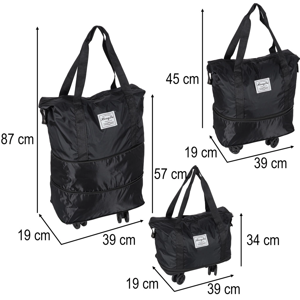 Ez a könnyű, mégis strapabíró utazótáska a hajtogatható kialakítás rugalmasságát ötvözi a kerekeken való kényelmes gördüléssel. A vízálló Oxford anyag megóvja a tartalmat az esőtől és a szennyeződésektől, míg a minőségi cipzár és a megerősített belső hosszú élettartamot biztosít. A három nyitási mód lehetővé teszi, hogy az aktuális igényekhez igazítsa a kapacitást.