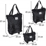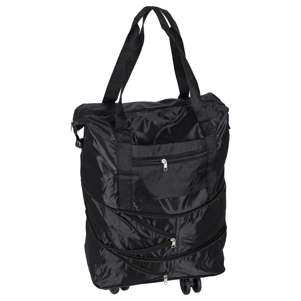 Praktikus, összecsukható gurulós utazótáska hétvégére és hosszabb utakra. Akár három fokozatban nyitható, kb. 50 literes űrtartalommal, vízálló Oxford poliészterből, 360°-ban forgó kerekekkel és masszív cipzárral. A levehető kerekeknek és az átgondolt belső elrendezésnek köszönhetően ideális a kényelmes pakoláshoz és a könnyű kezeléshez.