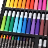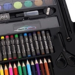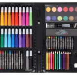 A készlet összesen 86 darabot tartalmaz, köztük pasztellceruzákkal, filctollakkal, viasz- és olajpasztellel a korlátlan kreativitás érdekében.