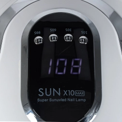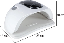 Nagy teljesítményű UV/LED körmös lámpa SUN X5 150 W-tal és 45 LED-del gyorsan és egyenletesen kötteti a gél lakkokat, géleket és akrilt. Kínál 10/30/60/99 s időzítőt low heat móddal, mozgásérzékelőt az automatikus indításhoz, valamint univerzális dupla hullámhosszt 365 + 405 nm a tökéletes eredményért manikűrnél és pedikűrnél is.