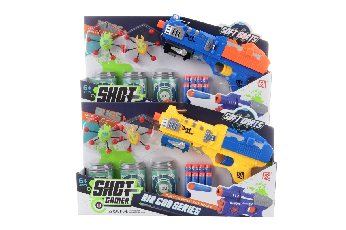 • Komplett készlet – pisztoly, 8 lövedék, 3 célpont és 2 ragadós bogár.
