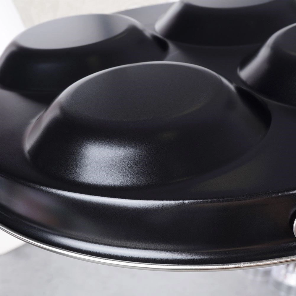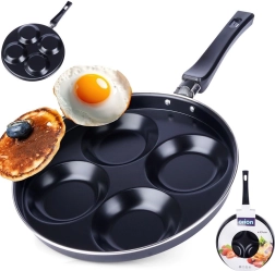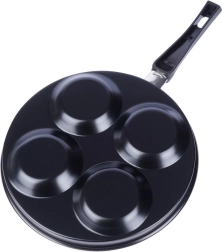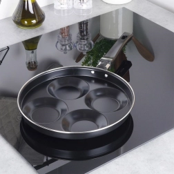 Ez a 25 cm-es serpenyő 4 elkülönített mélyedéssel (8 cm) megkönnyíti a reggeli és a gyors vacsorák elkészítését. Minden darab egyformán magas és átsült lesz, akár tojást, fánkot vagy mini palacsintát készítesz. A tartós tapadásmentes réteg minimalizálja az odasülést, és garantálja a könnyű elengedést és tisztítást.