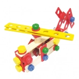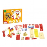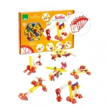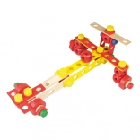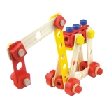 Színes és natúr lécek, csavarok, anyák, kerekek és csatlakozók segítségével a gyerekek járműveket és fantáziadús szerkezeteket állíthatnak össze, majd újra és újra átépíthetik őket.