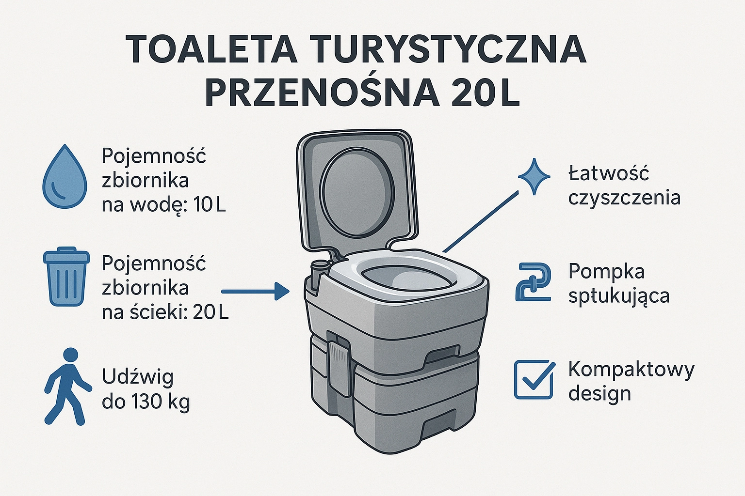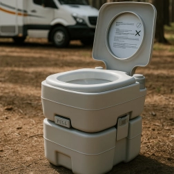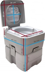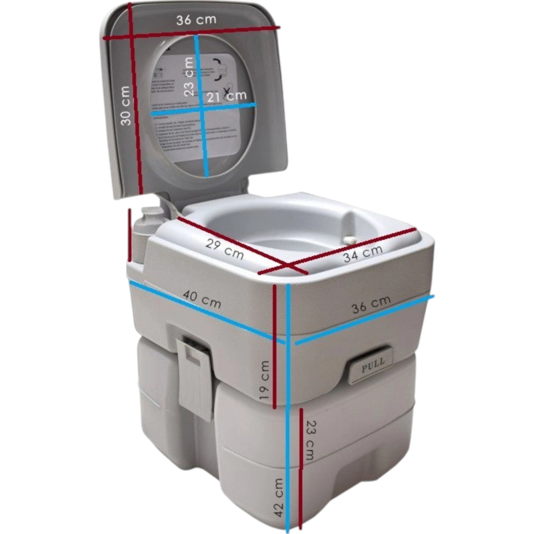 Praktikus, kompakt hordozható WC 20 l szennyvíztartállyal és 10 l frissvíztartállyal, amely biztosítja az utazás közbeni higiéniát és kényelmet – lakóautóban, sátorban, hajón vagy nyaralóban. A két részből álló kialakításnak, a szivárgásmentes oldalsó záraknak és a kézérintés nélküli, kényelmes ürítésnek köszönhetően a használat biztonságos és tiszta. A harmonika pumpa hatékony öblítést tesz lehetővé áram- és vízcsatlakozás nélkül, a masszív kivitel pedig akár 130 kg-ot is elbír.