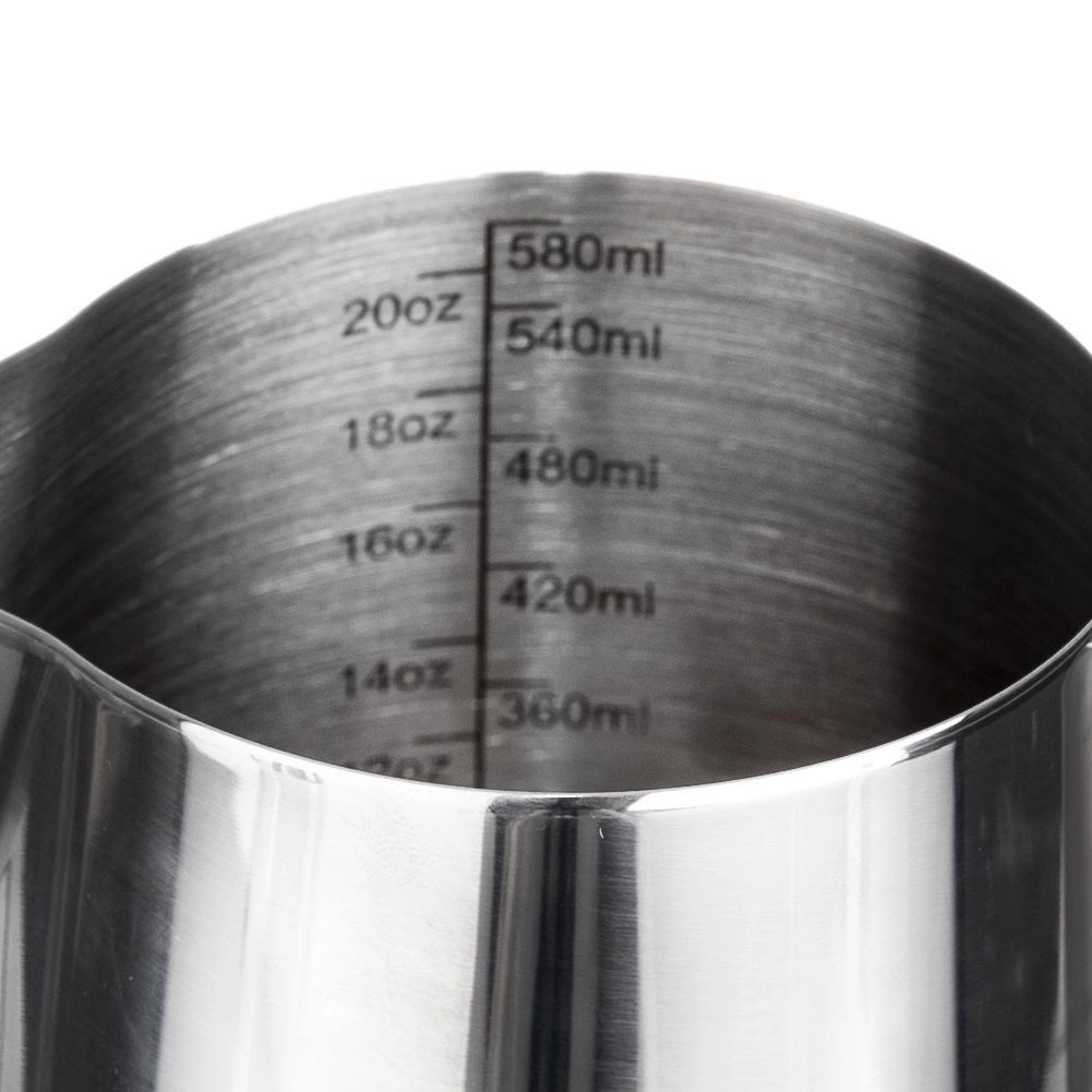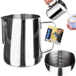 Stílusos és funkcionális segítőtárs baristáknak és kávérajongóknak. A kiöntő minőségi rozsdamentes acélból készült, könnyen tisztítható, korrózióálló és kiváló hővezető. A belső 60 ml-enkénti beosztások pontos tej- vagy tejszínmérést tesznek lehetővé a tökéletes cappuccinohoz vagy lattéhoz.
