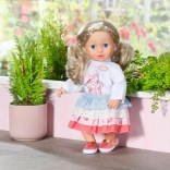 A Baby Annabell baba ruházata varázslatos fodros szoknyából és egyszerű, hosszú ujjú felsőből áll. A felsőt kedvelt Baby Annabell bárányka nyomattal és bájos masnival díszítik, ami eleganciát kölcsönöz az egész öltözéknek.