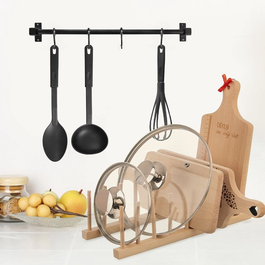 Rendezze áttekinthetően egy helyre a fedőket, lapos és mély tányérokat, valamint a vágódeszkákat. A nyolc pozíciós fa állvány függőlegesen tartja az edényeket, így azonnal kéznél vannak, gyorsabban száradnak, és nem viszik át a nedvességet. A minimalista megjelenés és a természetes szín bármilyen konyhai stílusba könnyedén illeszkedik.