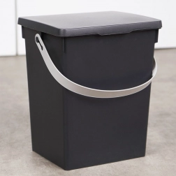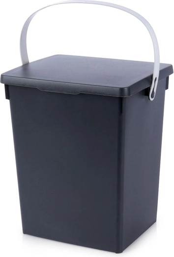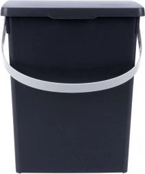 Praktikus és univerzális tárolókosár 5,5 l űrtartalommal, zárható fedéllel és kényelmes hordfüllel. Tartós, újrahasznosított műanyagból készült, kiválóan illik konyhába, fürdőszobába, irodába és műhelybe. A fedél megakadályozza a szagok kiszivárgását és védi a tartalmat a nedvességtől.