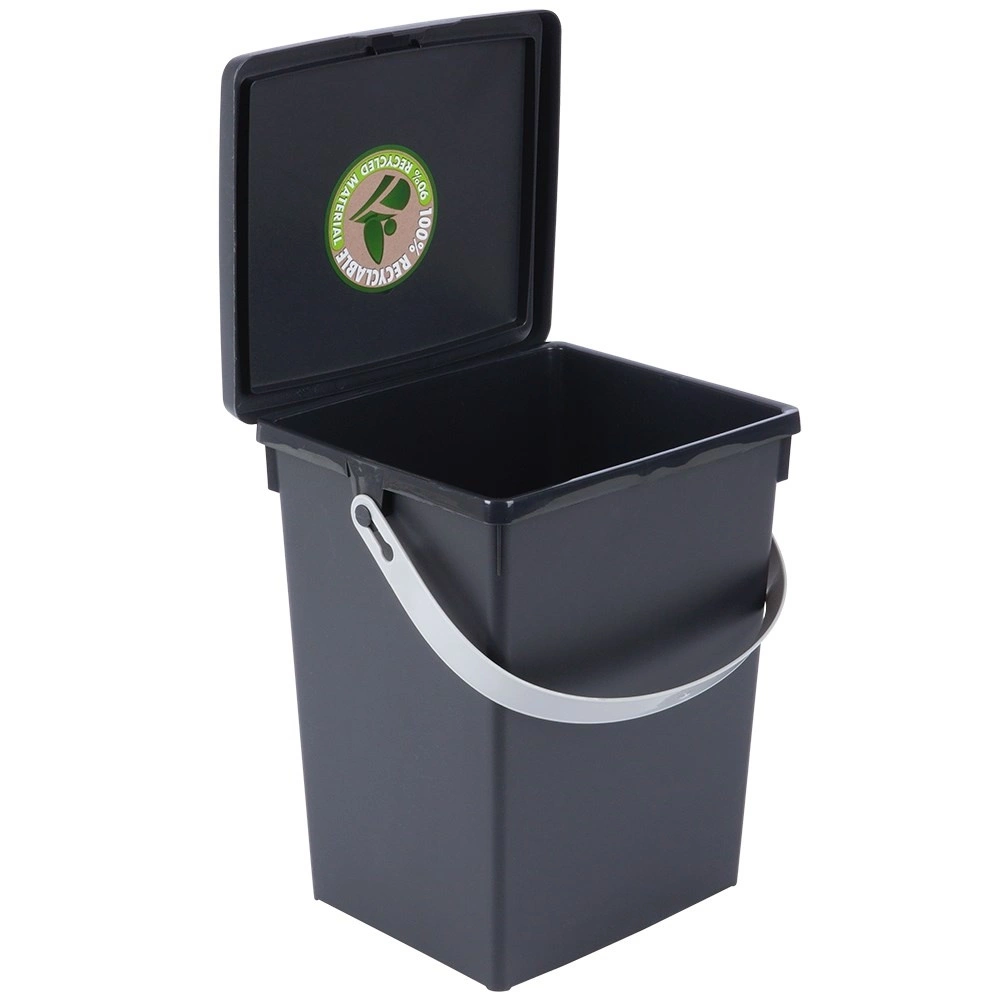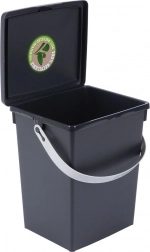 A felülről nyitható fedél védi a tartalmat a nedvességtől és portól, egyúttal megakadályozza a kellemetlen szagok terjedését – ideális hulladékhoz vagy komposzthoz.