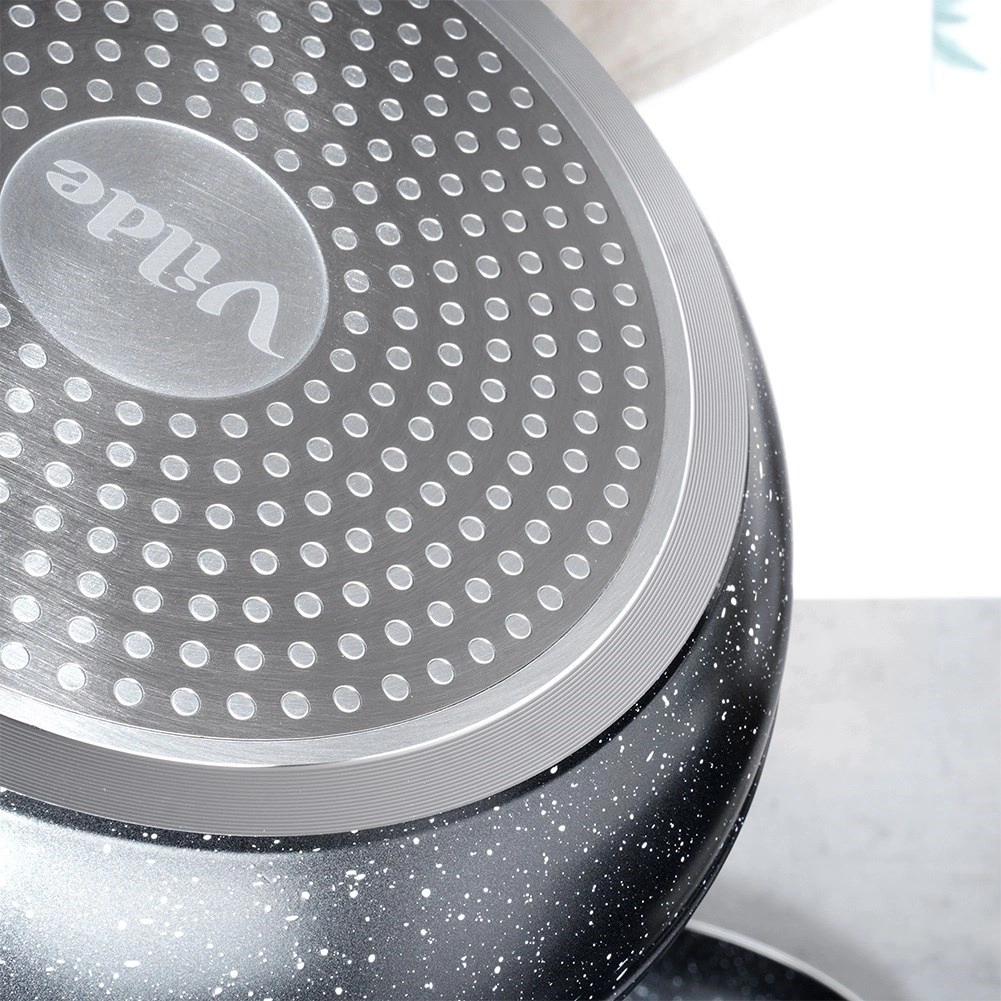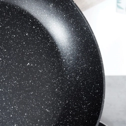 A köves textúra kiváló ételkioldást biztosít, így minimális zsiradékkal, leégés nélkül főzhet, és a tisztítás is gyors.