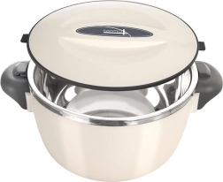Élvezze a házi ételeket ideális hőmérsékleten bárhol. A 900 ml-es ORION termo tál dupla falú kialakítású, rozsdamentes acél belsővel és strapabíró, gyöngyház krém színű műanyag külsővel. A minőségi szigetelésnek köszönhetően az ételek tovább maradnak melegek vagy hidegek; a hőtartás ideje a környezeti hőmérséklettől és a hőmérséklet-különbségtől függ.