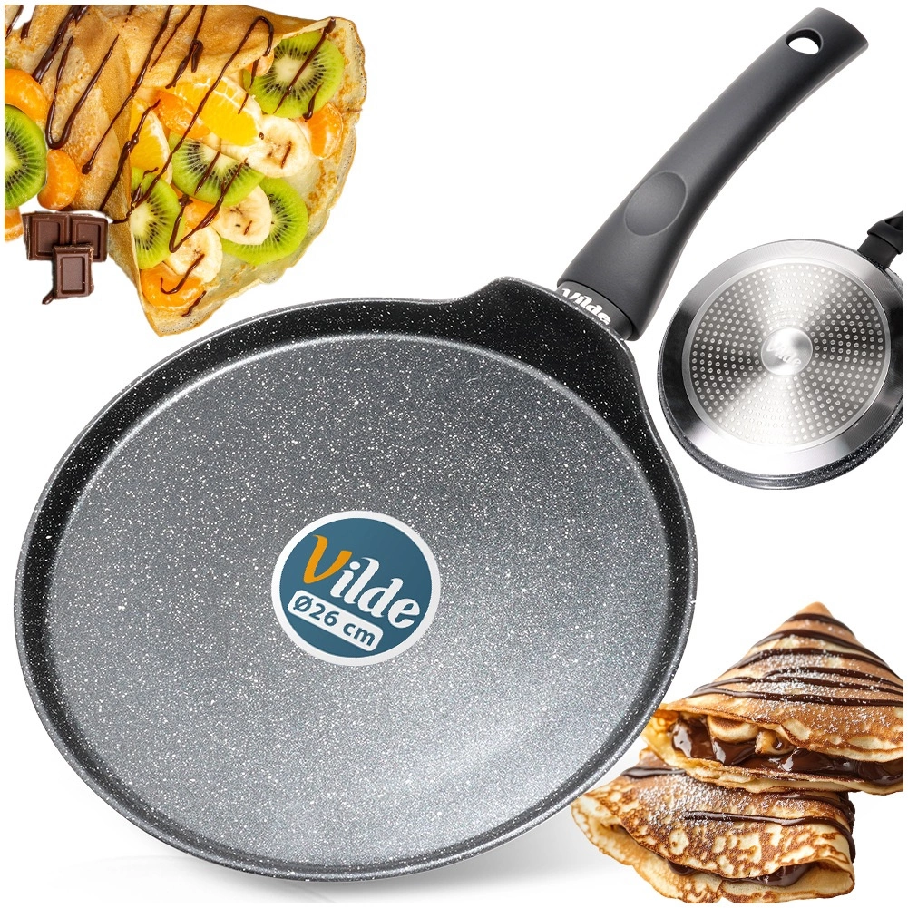 A speciális gránit bevonat megakadályozza az odatapadást, és minimális mennyiségű olajjal is lehetővé teszi a sütést. A palacsinták könnyedén lecsúsznak a serpenyőről a tányérra.