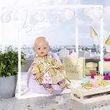 A szett része egy praktikus rózsaszín vállfa is, amely ideális a baba ruhák tárolására és kiállítására.