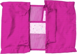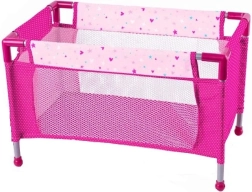 A rózsaszín kiságy fémkerettel ideális otthoni és kültéri játékra. Könnyen hordozható és könnyű.