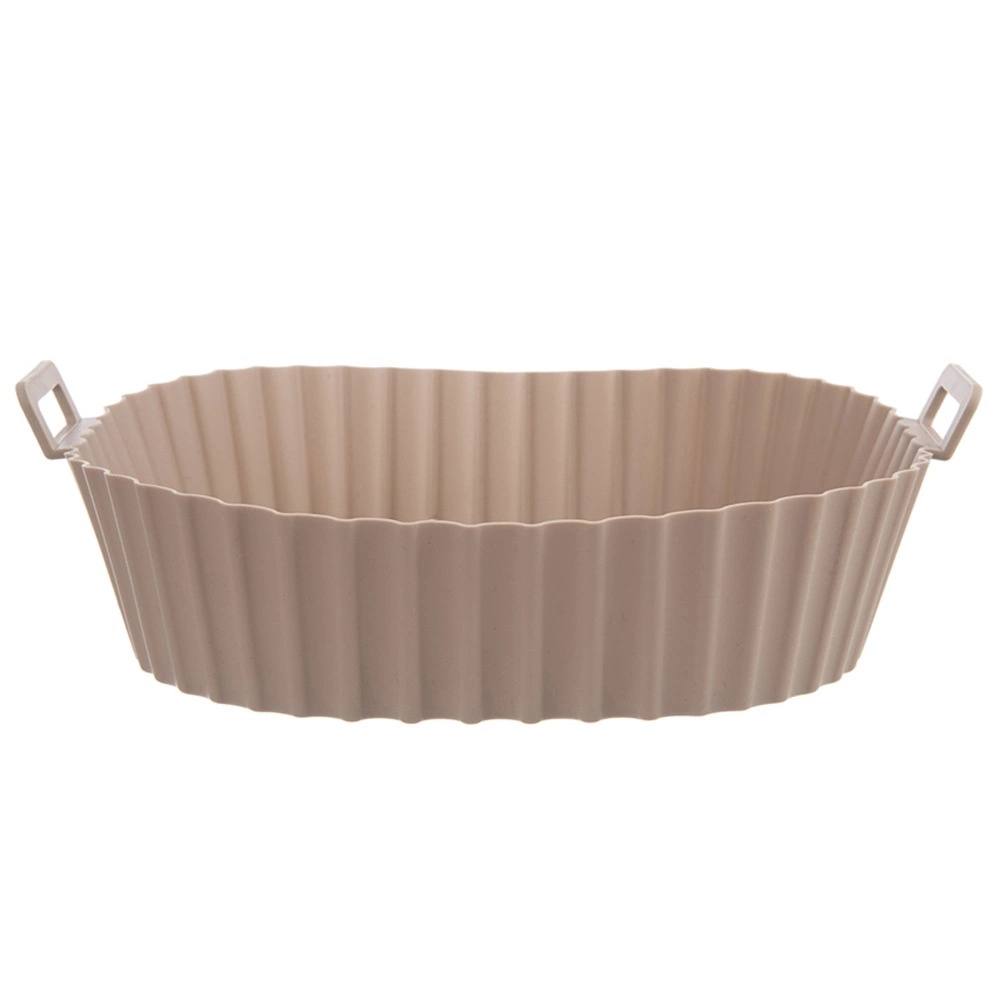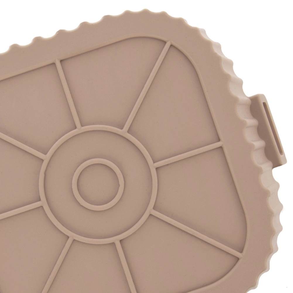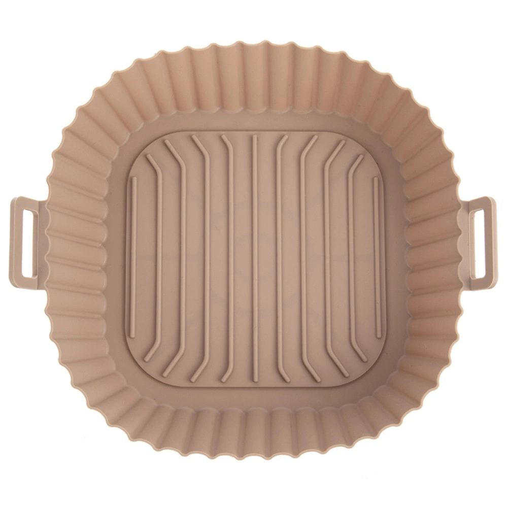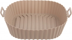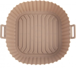 A bézs szilikon betétkosár Air Fryerhez 22 × 22 × 7 cm méretben (alj: 18 × 18 cm) védi a sütő belsejét az ételmaradékoktól és egyszerűsíti a karbantartást. A tapadásmentes felület megakadályozza az odakapást, az integrált fogantyúk pedig megkönnyítik a betét behelyezését és kiemelését.