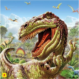 Minden doboz tartalmaz egy olyan dinoszaurusz figurát, amilyet a kirakón is összerak. A kép befejezése után kezdődhet a szabad játék és az őskori történetek.