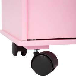 Forgó kerekek biztosítják a szekrény gördülékeny és biztonságos áthelyezését a gyerekszobában vagy a játszótérben.