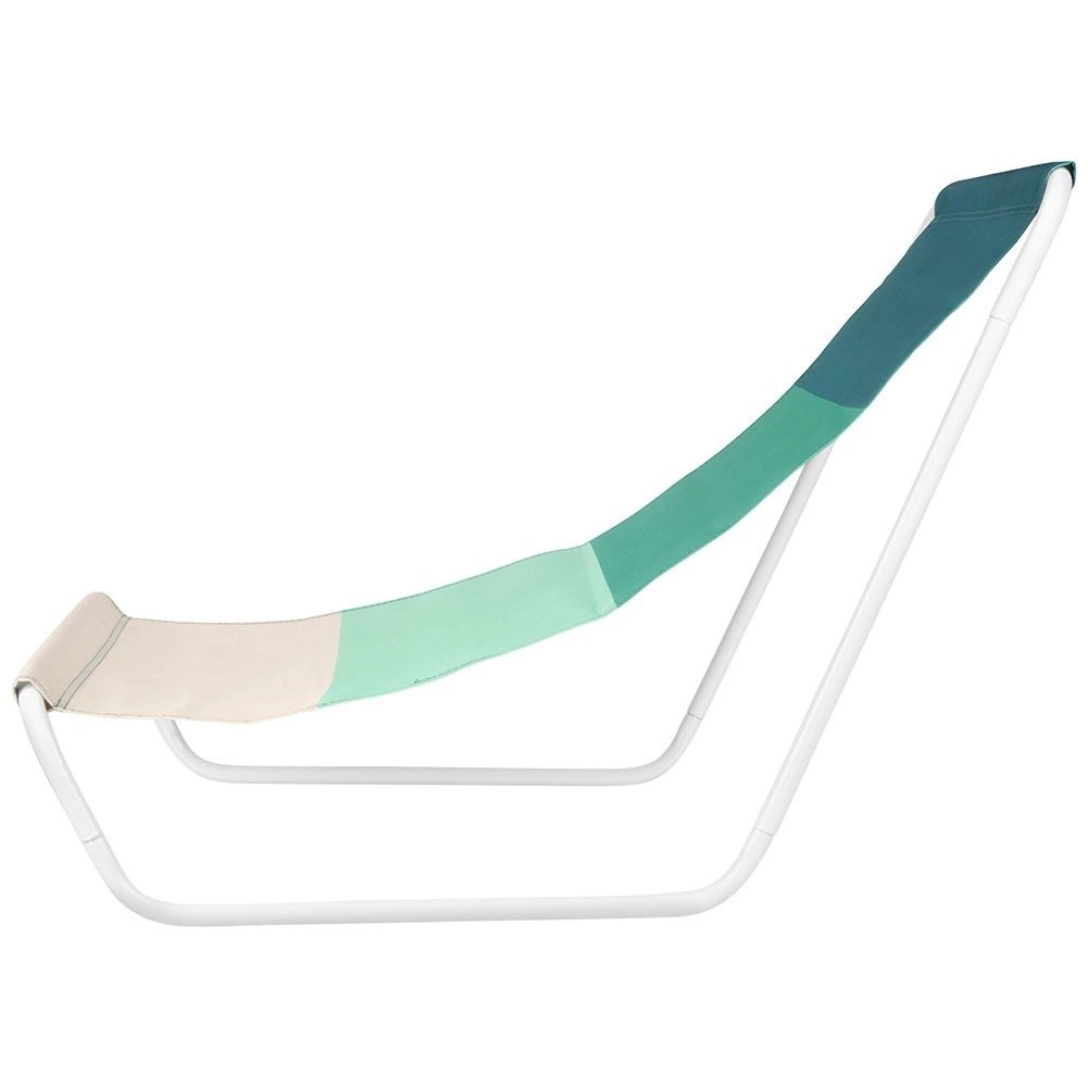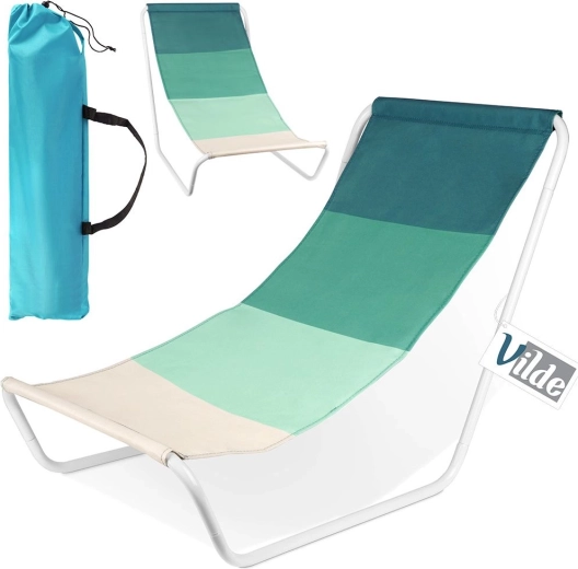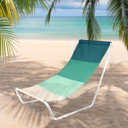 Ez a kényelmes strandszék kiváló pihenést nyújt az ergonomikusan formázott ülőrésznek és a lélegző szövetnek köszönhetően zöld árnyalatokban. A fehér fém váz könnyű, mégis erős, így a szék könnyen hordozható, és stabil alátámasztást ad a kikapcsolódáshoz.
