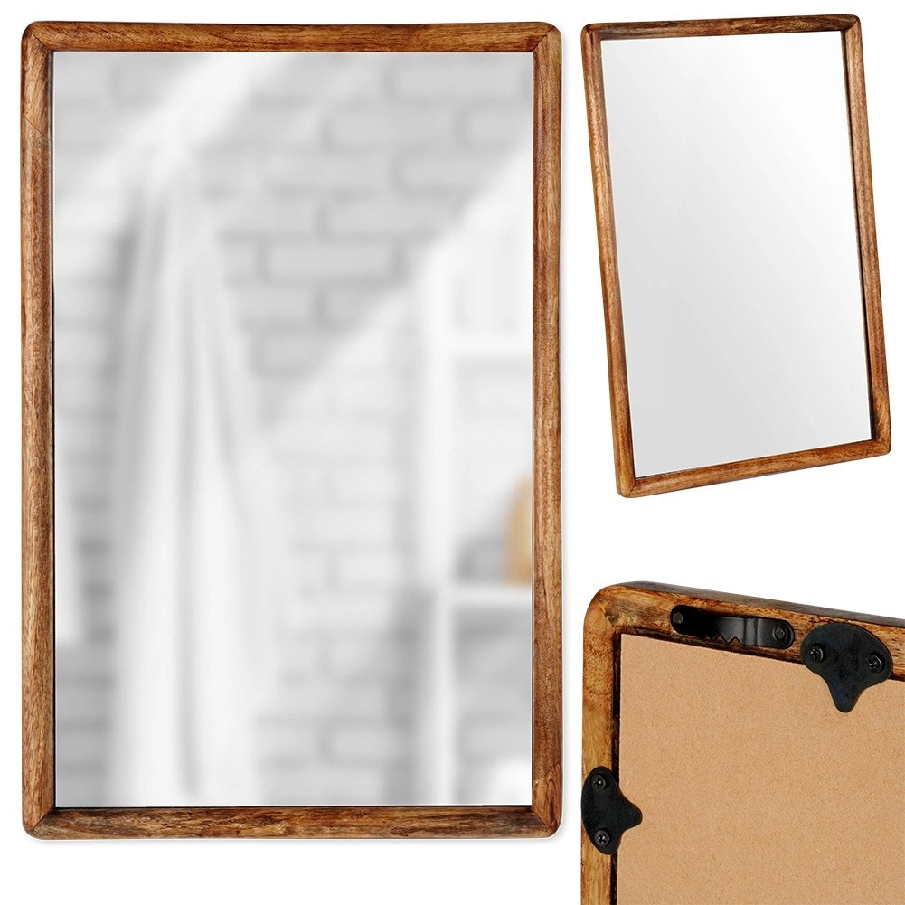 Elegáns falitükör 40 × 60 cm méretben, természetes mangófából készült fa kerettel, amely stílust és fényt visz az enteriőrbe. Függőlegesen és vízszintesen is felakasztható, tökéletes nappaliba, előszobába és hálószobába. Tiszta és világos tükröződést kínál, és praktikus, egyben dekoratív kiegészítője lesz bármely térnek.