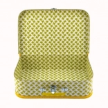 A praktikus fém fogantyú révén a bőrönd könnyen hordozható és kezelhető. A záródást fém csatt biztosítja, ami biztonságosan tartja a tartalmat belül.