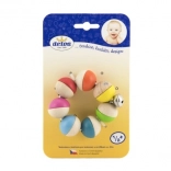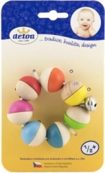 Detoa csörgő kiváló választás a legkisebbek számára. Színes és természetes félgolyócskák haranggal, ami finoman csilingel, kedvenc játszótárssá teszik ezt a játékot.