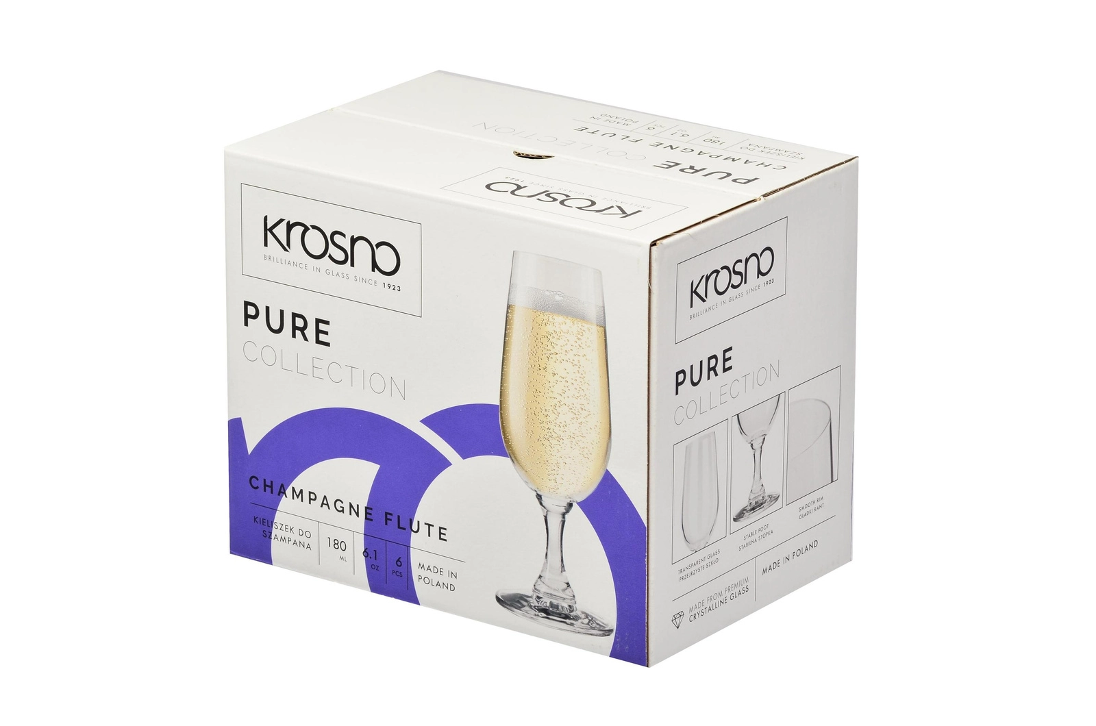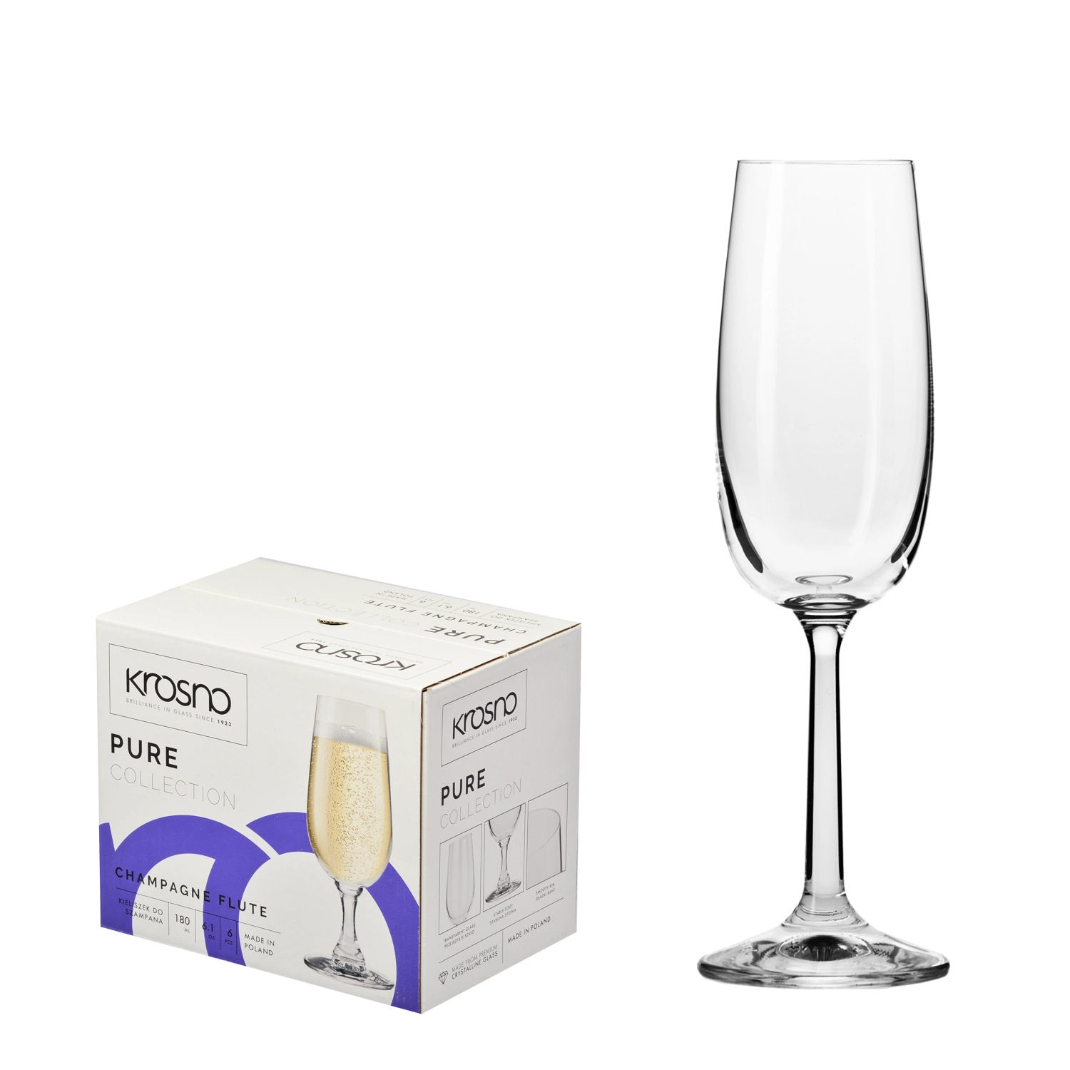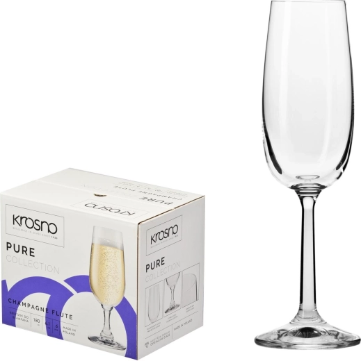 Élvezze a pezsgőt stílusosan a Krosno PURE 170 ml-es pezsgőspohár-készlettel. A magas szár és a stabil talp elegáns megjelenést kölcsönöz, és kényelmes fogást biztosít. A kristálytiszta, ólommentes Crystalline üveg kiemeli az ital színét és megőrzi frissességét.
