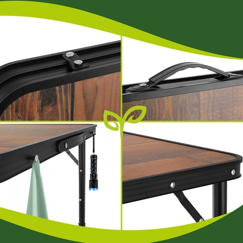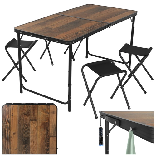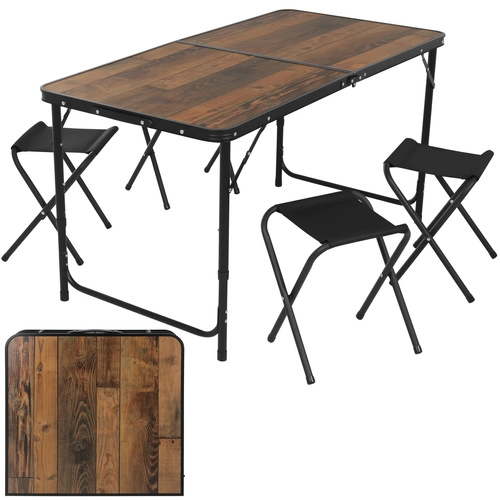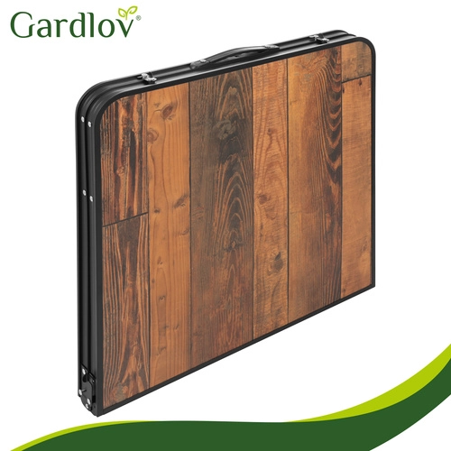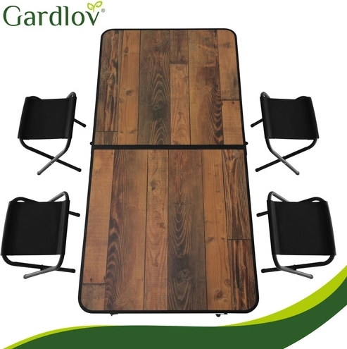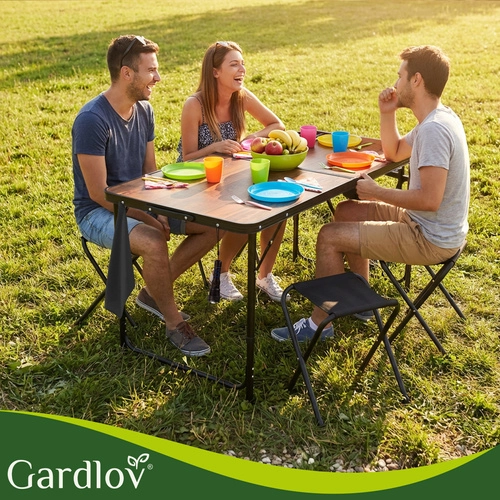 Élvezze a pikniket, a kempingezést vagy a teraszon való ücsörgést bonyolult előkészületek nélkül. Ez a GARDLOV összecsukható asztal négy székkel pillanatok alatt felállítható, majd ugyanilyen gyorsan hordozható bőrönddé csukható. A fa hatású asztallap elegáns megjelenést kölcsönöz, míg a tartós fém szerkezet és a véletlen összecsukódás ellen biztosító zárak mindent szilárdan a helyén tartanak.
