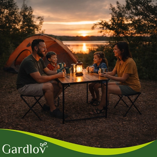 A praktikus GARDLOV összecsukható szett egyesíti az állítható magasságú kerti asztalt és a 4 összecsukható széket egyben. Összecsukva kompakt, fogantyús hordtáskát kapunk, amelyet könnyű szállítani és tárolni. A tartós kialakítás, a stabil fém vázak és a csúszásgátló végek kényelmes étkezést biztosítanak a kertben, a teraszon és kempingezéskor is.