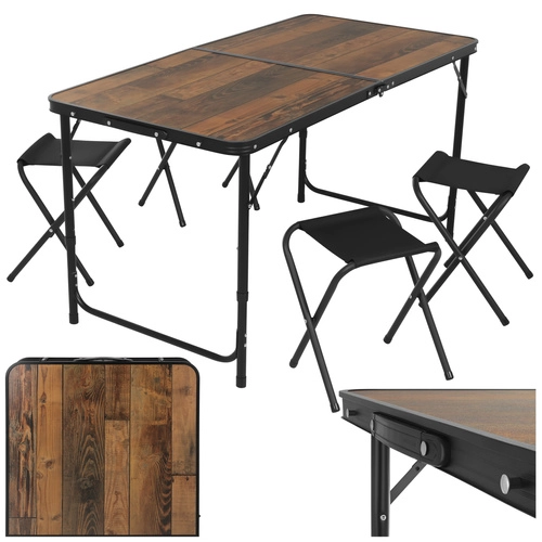 - Túra-/kempingszett – összecsukható asztal + 4 összecsukható szék