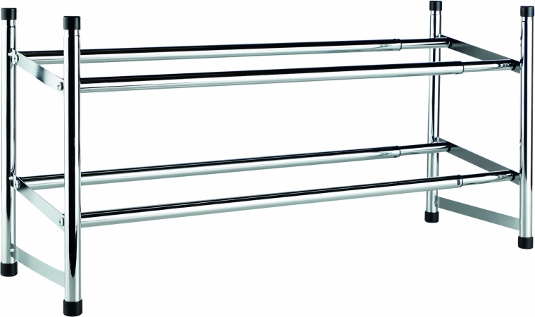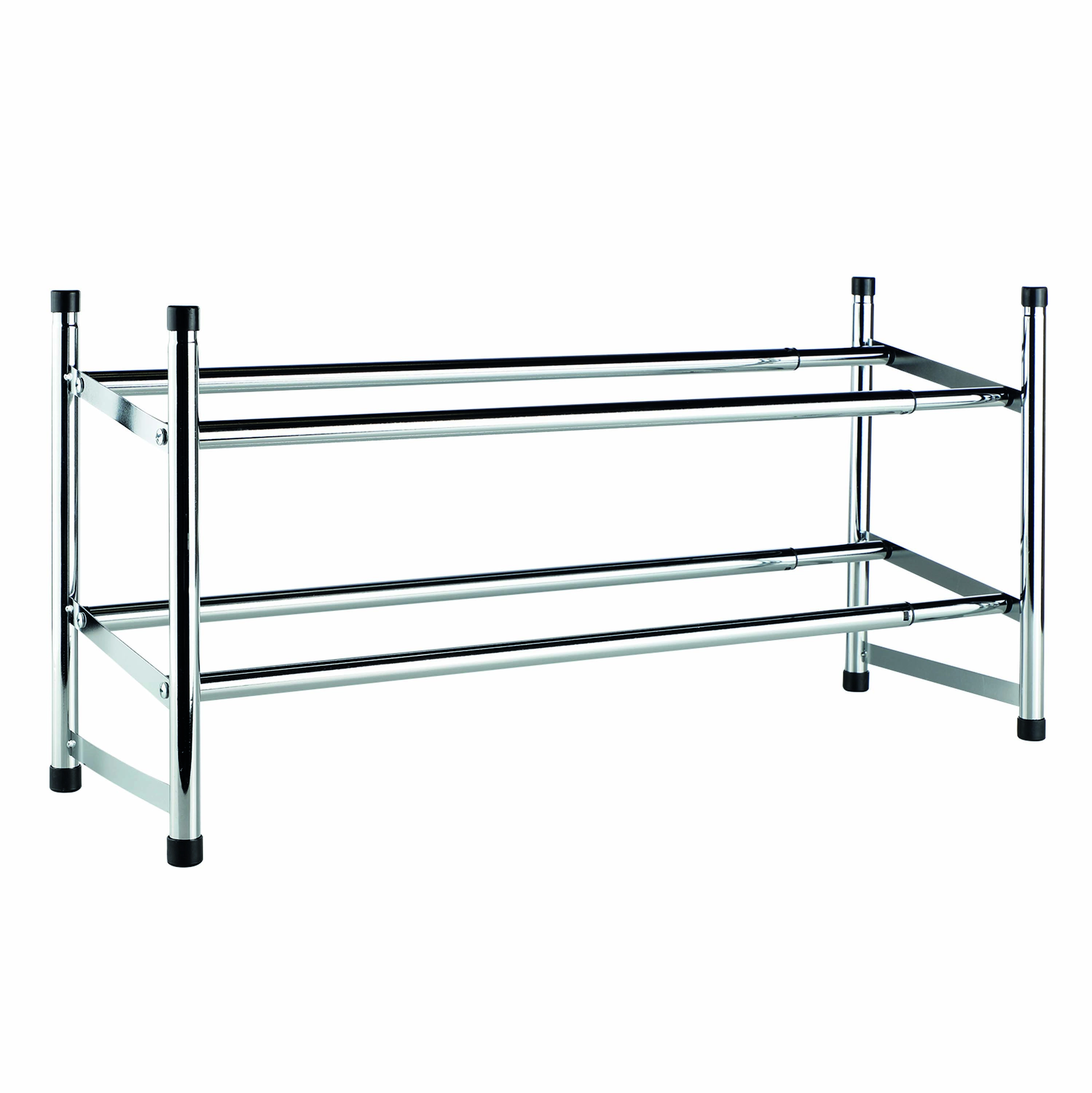 Praktikus cipőtartó két szinttel az átlátható cipőrendezéshez előszobába vagy gardróbba. Az állítható szélességnek és a krómozott acél kivitelnek köszönhetően tartós, stabil és helytakarékos.