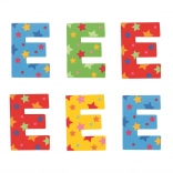 Színes fa E betű csillagos mintával, 3 éves kortól ajánlott. Támogatja a helyesírás, a betűfelismerés és a szóképzés fejlesztését. Tartós fából, biztonságos kialakítással készült, megfelel a európai biztonsági szabványoknak. Az ár 1 darabra vonatkozik, a színek különbözőek.